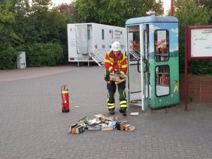 01.07.18 : Maschener Büchereitelefonzelle brannte – Feuerwehr löschte