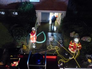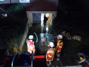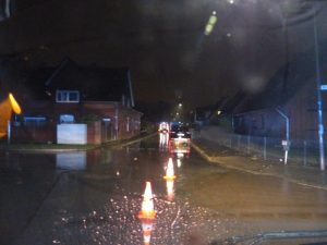Neben dem Sturm war es vor allem der Regen, der den Einsatzkräften viel Arbeit brachte. In Lübberstedt wurde die Kreissstraße K 75 zwischen Lübberstedt und Gödenstorf überflutet, in Fleestedt rückte die Feuerwehr um 19.29 Ur in die Straße „Im Alten Dorf“ aus, hier war die Straße komplett überflutet, und um 20.12 Uhr leisteten die Feuerwehren aus Egestorf und Sahrendorf/Schätzendorf in der Dorfstraße in Döhle Hilfe, auch hier war die Straße vollständig überflutet. Ebenfalls Straßenüberflutungen mussten die Feuerwehren in eckedorf/Metzendorf, Quarrendorf und Buchholz beseitigen. Die Feuerwehr Hittfeld rückte um 19.40 Uhr in die Straße „Am Küstergarten“ aus, hier drohte das viele Wasser in ein Wohnhaus zu laufen. Die Feuerwehr leistete hier ebenso Hilfe wie in der Krümser Straße in Krümse, wo ein Grundstück überflutet wurde. In Fleestedt wurde in der Straße „AM Försterland“ eine Garage überflutet, die von der Feuerwehr leergepumpt wurde, und in Fleestedt, Buchholz und Rade wurden zudem vollgelaufene Keller leergepumpt Menschen kamen bei den Einsätzen nicht zu Schäden, wie hoch die entstandenen Sachschäden bei den Wassereinsätzen an und in Wohnhäusern sind, muss nun von Experten beziffert werden.     -kpw-