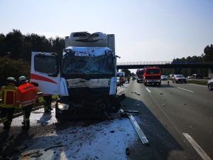 03.09.18 : Erneut schwerer Auffahrunfall auf der A 1 zwischen Maschen und Harburg – Feuerwehr und Rettungsdienst im Einsatz