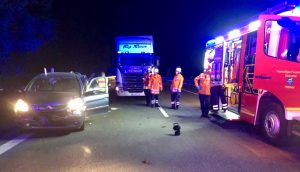 Seevetal / Hittfeld. Am Samstagabend gegen 22.30 Uhr wurden die Feuerwehren aus Hittfeld und Maschen zu einem schweren Auffahrunfall alarmiert. Auf der A1 zwischen den Anschlussstellen Seevetal-Hittfeld und Dibbersen war ein Lastzug aus bisher ungeklärter Ursache auf einen vor ihm fahrenden PKW aufgefahren. Dessen 73-jähriger Fahrer erlitt durch den Aufprall schwere Verletzungen und wurde ins Krankenhaus gebracht.