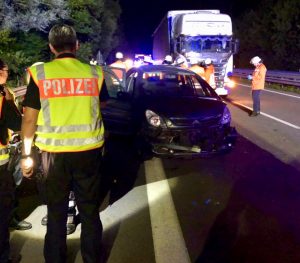 04.08.18 : Lastzug schiebt PKW zusammen – Schwerer Unfall auf der A1 fordert einen Schwerverletzten