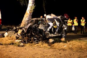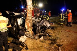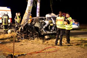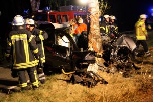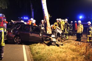 Pattensen. Ein schwerer Unfall auf der Landesstraße 215 bei Pattensen ereignete sich in der Nacht von Samstag auf Sonntag. Aus bisher ungeklärter Ursache war der Fahrer eines Toyota mit seinem Fahrzeug frontal gegen einen Baum geprallt. Bei dem Aufprall wurde der Fahrzeugführer in dem Wagen schwerst eingeklemmt und verstarb noch an der Unfallstelle. Neben dem Rettungsdienst wurden die Feuerwehren Luhdorf und Winsen gegen 23.15 Uhr alarmiert. Die Fahrzeugtrümmer lagen auf einem neben der Unfallstelle befindlichen Feld und auf der Fahrbahn verteilt. Die Kräfte der Feuerwehren begannen mit schwerem hydraulischem Rettungsgerät sofort mit der Bergung, der im Fahrzeug befindlichen Person. Durch die starke Deformierung des PKW, der durch den Aufprall am Baum so stark zusammen gedrückt war, zog sich die Bergung über gut eine Stunde hin. Zwischenzeitlich wurde zusätzlich die Feuerwehr Pattensen nachalarmiert. Zur Unfallursachenermittlung wurde von der Polizei ein Sachverständiger hinzugezogen. Nach der Bergung wurde für die Ermittlungen die Unfallstelle von der Feuerwehr ausgeleuchtet. Für die Bergungs- und Aufräumarbeiten blieb die Landestraße über einen längeren Zeitraum voll gesperrt. Die Schadenshöhe steht bisher noch nicht fest.