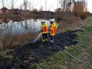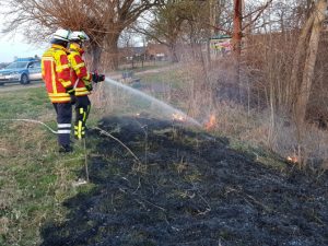Maschen Einen der ersten Freiflächenbrände dieses Jahres im Landkreis Harburg musste am Sonnabend die Freiwillige Feuerwehr Maschen löschen. Die Feuerwehr war durch die Winsener Rettungsleitstelle um 19.45 Uhr in den Haulandsweg in Maschen alarmiert worden. Zeugen hatten dort eine brennende Böschung im Bereich des Regenrückhaltebeckens bemerkt und über Notruf die Feuerwehr verständigt. Die Maschener Feuerwehr war binnen kurzer Zeit mit zwei wasserführenden Einsatzfahrzeugen an der Brandstelle. Bei ihrem Eintreffen brannten gut 100 Quadratmeter ausgedörrtes Gras und Buschwerk im Uferbereich des Regenrückhaltebeckens. Mit Hilfe eines Strahlrohres löschten die Feuerwehrleute das Feuer rasch ab. Die Brandursache ist ungeklärt, die Polizei war vor Ort und hat entsprechende Ermittlungen aufgenommen.