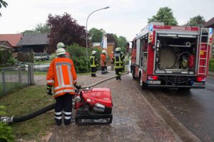 Auch in Schwinde rückte die Feuerwehr zu einem unwetterbedingten Einsatz aus. Auch hier drohte Regenwasser in ein Haus zu laufen.