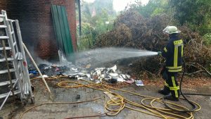 10.09.18 : Mülltonnenbrand in Marxen droht auf Wohnhaus überzugreifen