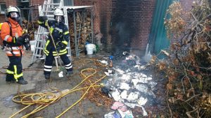 Marxen. Ein Mülltonnenbrand in Marxen, der auf ein angrenzendes Wohnhaus überzugreifen drohte, beschäftigte am Montagvormittag die Feuerwehr. Gegen 11:00 Uhr bemerkte eine Spaziergängerin eine brennende Mülltonne an einem Wohnhaus in der Straße „Im Rothen“. Da die Mülltonne direkt an der Außenwand des Hauses stand, drohte der Brand auf das Gebäude überzugreifen. Geistesgegenwärtig informierte sie umgehend die Bewohner und wählte den Notruf. Beide Bewohner konnten das Haus unverletzt verlassen. Die Leitstelle beorderte neben den Freiwilligen Feuerwehren aus Marxen und Brackel den Einsatzleitwagen der Samtgemeindefeuerwehr zur Einsatzstelle. Zwei der insgesamt ca. 30 Einsatzkräfte gingen unter umluftunabhängigem Atemschutz und einem Schnellangriffsschlauch vor und löschten den Brand ab. Ein Übergreifen der Flammen auf das Wohnhaus konnte erfolgreich verhindert werden. Um weitere Brandnester auszuschließen, wurden einzelne Gebäudeteile mit einer Wärmebildkamera kontrolliert. Der besonnenen und schnellen Reaktion der Spaziergängerin sowie dem schnellen Eingreifen der Feuerwehr ist es zu verdanken, dass es zu keinem größeren Schaden gekommen ist. Der Einsatz war für die Feuerwehr nach einer knappen halben Stunde beendet.