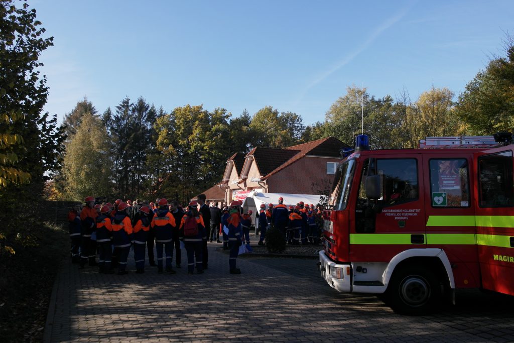Um 10:00 Uhr begannen die ersten Prüfungen beim Moisburger Feuerwehrhaus. Bei bestem Wetter sah man die Jugendlichen um das Gebäude und die Fahrzeuge herum verteilt ihr Wissen abrufen. Es galt praktische und theoretische Aufgaben zu lösen. Kreisbrandmeister Volker Bellmann ließ es sich nicht nehmen, sich von den sehr guten Kenntnissen der Jugendlichen vor Ort zu überzeugen. Nach knapp vier Stunden waren die Prüfungen beendet und die Jugendlichen traten zur Verleihung an. Der stellvertretende Kreisjugendfeuerwehrwart Eike Rohte dankte der Ortswehr Moisburg und der Samtgemeindefeuerwehr Hollenstedt für die hervorragende logistische Unterstützung. Einen weiteren Dank richtete er an das Wertungsrichterteam um Fachbereichsleiter Henning Gehrdau und Manuela Spende. Dann aber ging es für die Jugendlichen zum wesentlichen Teil über – sie bekamen ihre verdienten Abzeichen verliehen.