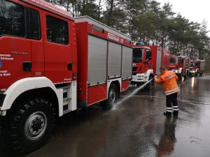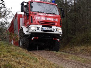 Hittfeld/Wendisch-Evern Seit 2007 bietet die Kreisfeuerwehr Harburg den Feuerwehren des Landkreises ein Fahrsicherheitstraining an. An sechs bis zehn Terminen im Jahr werden Fahrer mit den Fahrerlaubnisklassen B und C von einem vom Deutschen Verkehrssicherheitsrat (DVR) zertifizierten Team geschult und auf die besonderen Gefahren von Einsatzfahrten vorbereitet. Am vergangenen Wochenende stand nun ein besonderes Training auf dem Programm. Da die Feuerwehr auch da hinkommen muss, wo es keine oder nur sehr schlechte Straßen gibt, halten zahlreiche Feuerwehren des Landkreises geländegängige Fahrzeuge vor. Gemeinsam mit der Feuerwehr des Landkreises Lüneburg wurde deshalb auf dem Lüneburger Standortübungsplatz bei Wendisch-Evern ein Geländefahrtraining angeboten. Lehrgangsleiter Holger Zemplin und Michael Stoll hatten für die Teilnehmer aus den Wehren Appel, Buchholz, Garlstorf, Hanstedt, Meckelfeld, Over-Bullenhausen und Welle einen anspruchsvollen Kurs durch das Panzergelände ausgearbeitet. Nach einer theoretischen Einführung in der Feuerwehrtechnischen Zentrale in Hittfeld starteten die sieben geländegängigen Fahrzeuge in Richtung Lüneburg. Angekommen auf dem Übungsplatz konnten nach einer kurzen Einweisung die Fähigkeiten von Fahrzeugen und Fahrern ausgelotet werden. Beim freien Fahren auf dem sandigen und schlammigen Gelände wurden die Möglichkeiten, die Allradantrieb und Differentialsperren bieten bis an die Grenzen ausgereizt. Zwangsläufig kam auch der Punkt „Bergen von festgefahrenen Fahrzeugen“ nicht zu kurz. Die Ausbilder Holger Zemplin und Michael Stoll stiegen zwischenzeitlich immer wieder in den Fahrzeugen zu und gaben den Fahrern wertvolle Tipps für das Fahren im unwegsamen Gelände. Der stellvertretende Kreisbrandmeister Sven Wolkau beobachtete das Training und konnte sich beim Mitfahren auf den Fahrzeugen vom Können der Fahrzeuge und Fahrer überzeugen. Am Ende des Lehrgangs stand eine gründliche Reinigung der Fahrzeuge an, bevor es mit zahlreichen neuen Erfahrungen und Eindrücken in Richtung Heimat ging. Lehrgangsleiter Zemplin kündigte an, dass voraussichtlich im September eine weiter Schulung dieser Art stattfinden werde.