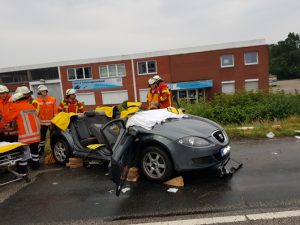 14.06.18 : Schwerer Verkehrsunfall in Hittfeld – Feuerwehr rettet zwei Personen aus PKW