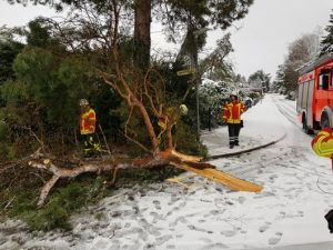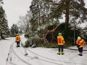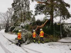 WÜhrend dieses Einsatzes mussten zudem diverse Feuerwehren zu Schneebrucheinsätzen ausrücken. Der nasse Schnee war für manche Bäume zu schwer, die kippten um oder brachen ab. In Maschen musste die Feuerwehr in der Speckmannstraße einen kapitalen abgebrochenen Ast aus einer Kiefer beseitigen. In Bendestorf rückte die Feuerwehr gleich zweimal aus, in der Gartenstraße und auf der Landesstraße L 213 waren Bäume zu beseitigen. In Holm-Seppensen rückte die Feuerwehr um 11.18 Uhr in den Tiedemannweg aus, hier musste ein Baum beseitigt werden, und in Ehestorf beseitigte die Feuerwehr in der Appelbüttler Straße einen umgestürzten Baum. Die Feuerwehr Elstorf rückte um 11.54 Uhr in die Rosengartenstraße aus, hier war ein Baum zu beseitigen, in Hittfeld rückte die Feuerwhr um 12.12 Uhr in die Maschener Straße aus, um einen weiteren Baum zu beseitigen, und weitere Hilfe der Feuerwehr war um 12.20 Uhr im Lohbergenweg in Seppensen erforderlich, hier drohte ein Ast zu fallen. Die Feuerwehr Tötensen beseitigen weiterhin im Metzendorfer Weg einen Baum,, und um 13.15 Uhr rückte die Feuerwehr Garstedt auf die Landesstraße L 234 aus, hier war ein Baum auf die daneben führenden Bahngleise gestürzt. -kpw-