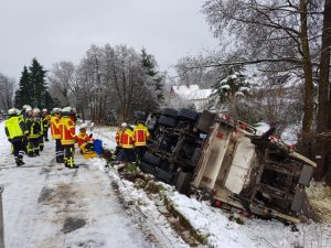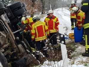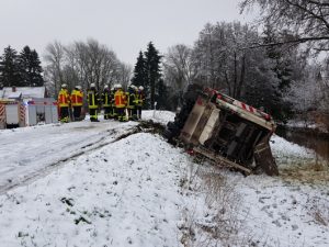 18.01.18 : Schneefall im Landkreis Harburg : Müllwagen stürzt von Deich – Feuerwehren absolvieren Einsätze wegen Schnebruch