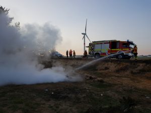 Horst/Maschen Einen Brandeinsatz musste die Freiwillige Feuerwehr Maschen am Sonnabend morgen im Ohlendorfer Weg in Horst absolvieren. Die Feuerwehr war um 06.04 Uhr durch die Winsener Rettungsleitstelle zu einem Unterholzbrand in den Ohlendorfer Weg in Horst alarmiert worden. Ein aufmerksamer Autofahrer hatte auf der nahen BAB A 7 bei einem Waldstück Rauch aufsteigen sehen und die Feuerwehr alarmiert. Kurz hinter dem Ortsausgang in Richtung Ohlendorf brannte dicht an einem Waldstück ein unbeaufsichtigtes, aus vielen Holzstücken hergestelltes Lagerfeuer. Die Maschener Feuerwehr war rasch mit zwei wasserführenden Fahrzeugen an der Brandstelle, mit Hilfe eines Strahlrohres wurde das Feuer gelöscht und die unmittelbare Umgebung auch bewässert. Für die Feuerwehr war der Einsatz nach 20 Minuten beendet. Die Polizei hat die weiteren Ermittlungen übernommen.