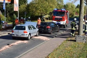 Asendorf. Bei einem Verkehrsunfall in Asendorf wurden am Freitagnachmittag zwei Personen leicht verletzt. Gegen 13:30 Uhr übersah ein 75-jähriger Golf-Fahrer, dass ein weiterer Golf nach links auf das Gelände der örtlichen Tankstelle abbiegen wollte und fuhr auf diesen auf. Durch den Aufprall wurden sowohl der Unfallverursacher als auch die Fahrerin des vorderen PKW leicht verletzt. Da zunächst Rauch aus einem der Fahrzeuge aufstieg, wurden, neben dem Rettungsdienst und der Polizei, die Feuerwehren aus Asendorf und Dierkshausen sowie das Tanklöschfahrzeug aus Hanstedt zur Einsatzstelle alarmiert. Vor Ort konnte glücklicherweise kein Feuer an einem der Fahrzeuge festgestellt werden. Die Feuerwehrkräfte betreuten die Verletzten bis zum Eintreffen des Rettungsdienstes und streuten die auslaufenden Betriebsstoffe ab.