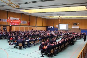 Tangendorf. Sagehafte 224 neue Feuerwehrleute wurden im Rahmen der feierlichen Vereidigung während des Kreisfeuerwehrtages in Tangendorf für den Dienst in der Feuerwehr verpflichtet. Viele Bürger wohnten diesem feierlichen Akt bei und bedankten sich bei den neuen Feuerwehrleuten für ihre Bereitschaft zum Dienst am Nächsten mit lautem Applaus. Sowohl Kreisbrandmeister Volker Bellmann als auch Landrat Rainer Rempe bedankten sich bei den jungen Feuerwehrleuten und betonten, dass sie eine ganz wichtige Stütze im Feuerwehrwesen des Landkreises Harburg seinen. Die Feuerwehren des Landkreises Harburg sind auf jeden Fall eine ganz wichtige Säule im öffentlichen Leben im Landkreises, betonte Kreisfeuerwehrverbandsvorsitzender Volker Bellmann im Rahmen der Delegiertenversammlung beim Kreisfeuerwehrtag in Tangendorf. Wie Bellmann betonte, können die Feuerwehren weiterhin auf steigende Mitgliedszahlen sowohl bei der aktiven- als auch bei der Jugend- und Kinderfeuerwehr blicken, entgegen des Landestrends. Wie Bellmann weiter anführte, stieg die Anzahl der aktiven Feuerwehrleute um 1,5 Prozent auf 4 795 Aktive an, bei den 92 Jugendfeuerwehren stieg die Anzahl der Jugendlichen um 2,5 Prozent auf 1 458 Mitglieder an, und durch mehrere Neugründungen stieg die Anzahl der Kinder in den jetzt 31 Kinderfeuerwehren auf 550 Kinder an. Durch diese hervorragenden Zahlen in der Mitgliederbewegung ist der Kreisfeuerwehrverband des Landkreises Harburg weiterhin der fünftgrößte Verband im niedersächsischen Landesfeuerwehrverband. Hier unterstrich Bellmann die Notwendigkeit von Feuerwehrverbänden, sei es auf Landes- oder Kreisebene, denn nur mit der Stärke von Verbänden können auch wichtige Änderungen und/oder Neuerungen für die Feuerwehren erzielt werden. Dank erfolgreicher Nachwuchsarbeit und einer hervorragenden Ausbildung könne man auf diese Zahlen mit Stolz schauen, betonte Bellmann vor den anwesenden 279 Delegierten aus den 107 Feuerwehren des Kreisgebiets. Einen weiteren Anstieg verzeichnete man letztes Jahr auch bei den Einsatzzahlen, wo Bellmann ein Rekordjahr verzeichnete, 5500 Alarmierungen zu mehr als 4200 Einsatzstellen wurden gezählt. Abgerundet wurde der erste Tag des Kreisfeuerwehrtags mit Wahlen und Ehrungen. Sowohl Verbandsvorsitzender Bellmann als auch seine Vertreter Torsten Lorenzen und Sven Wolkau und die beiden stellvertretenden Abschnittsleiter Jonny Anders und Michael Bulst wurden einstimmig in ihren Ämtern bestätigt. Ebenfalls bestätigt wurden die im März auf der Jugendfeuerwehrversammlung gewählten Kreisjugendfeuerwehrwart Detlef Schröder und sein Vertreter Eike Rohte. Zudem wurden durch Bellmann und den Präsidenten des Landesfeuerwehrverbands, Karl-Heinz Banse, der bisherige Gemeinderbrandmeister der Samtgemeinde Elbmarsch, Frank Hupertz mit dem Deutschen Feuerwehrehrenkreuz in Gold und Seevetals Gemeindebrandmeister Rainer Wendt mit dem Deutschen Feuerwehrehrenkreuz in Silber ausgezeichnet. Die goldene Ehrenmedaille des Kreisfeuerwehrverbands erhielt weiterhin Friedrich-Hermann Vick aus Toppenstedt, die silberne Ehrenmedaille des Kreisfeuerwehrverbands erhielt weiterhin Michael Stutzer aus Lübberstedt.