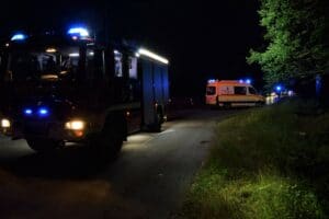 Thieshope. Gegen 22:45 Uhr am Freitagabend steuerte der Fahrer eines Opel Movano den Rastplatz auf der L215 zwischen Thieshope und Pattensen an. Kurz nachdem er das Fahrzeug gestoppt hatte, bemerkte er einen mit hoher Geschwindigkeit aus Richtung Pattensen heranfahrenden Audi. Der Fahrer des Audis verlor in der leichten Linkskurve die Kontrolle über sein Fahrzeug, kam nach rechts von der Fahrbahn ab und schleuderte in Richtung Rastplatz. Geistesgegenwärtig fuhr der Fahrer des Opels einige Meter nach vorne, wodurch er einen Frontalzusammenstoß beider Fahrzeuge verhindern konnte. Der Audi touchierte das Heck des Opels und schleuderte anschließend in den Seitenraum. Der Fahrer des Opels konnte nach dem Aussteigen nur ein Trümmerfeld, aber keinen weiteren PKW ausfindig machen. Er ging daher davon aus, dass das Fahrzeug mit hoher Geschwindigkeit in den Wald gefahren sein musste. Die Rettungsleitstelle beorderte daher, neben dem Rettungsdienst und der Polizei, die Freiwilligen Feuerwehren aus Thieshope und Brackel sowie den Rüstwagen der FF Maschen zur Einsatzstelle, da von einem eingeklemmten Fahrer ausgegangen werden musste. Die innerhalb weniger Minuten am Einsatzort eingetroffenen Einsatzkräfte der Feuerwehr leuchteten die Einsatzstelle aus und durchsuchten Seitenstreifen und Wald nach dem verunfallten Fahrzeug. Nach kurzer Suche konnte festgestellt werden, dass sich der Audi, nach einigen Metern im Grünstreifen, wieder auf die Fahrbahn retten und anschließend den Unfallort verlassen konnte. Einige Zeit später meldete sich der Fahrer des Audis bei der Polizei, welche gleich mehrere Verfahren gegen den 43-jährigen einleitete (Siehe gesonderter Bericht der Polizei LK Harburg). Glücklicherweise wurde bei diesem Unfall niemand verletzt oder eingeklemmt, sodass sich die Arbeit der Feuerwehr auf das Ausleuchten und Absichern der Einsatzstelle beschränkte.