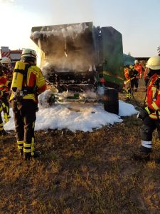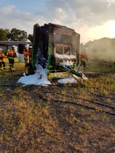 Zunächst rückten am Freitag um 9.48 Uhr erneut die Feuerwehren aus Stelle, Ashausen, Fliegenberg/R. und Maschen sowie die Werkfeuerwehr des Rangierbahnhofes an die Bahnstrecke Stelle-Mashcen aus, im Bereich des Bardenwegs in Stelle war es erneut zu dem Brand von Unterholz gekommen. Mit mehreren Strahlrohren löschten die Feuerwehrleute das Feuer ab, die Nachlöscharbeiten zogen sich über einige Zeit hin. Gut dreieinhalb Stunden später, um 13.14 Uhr wurden die Feuerwehren aus Todtglüsingen, Tostedt, Wistedt sowie die Tanklöschfahrzeuge der Feuerwehren aus Heidenau und Hollenstedt in die Straße „In der Schaafheide“ in Todtglüsingen alarmiert, hier brannten Busch und Unterholz. Mit mehreren Strahlrohren gelang es der Feuerwehr auch hier, das Feuer rasch unter Kontrolle zu bringen, die Nachlöscharbeiten zogen sich über eine längere Zeit hin. Um 20.11 Uhr schließlich wurden die Feuerwehren aus Hörsten und Meckelfeld sowie der Einsatzleitwagen der Feuerwehr Seevetal zu einer brennenden Strohballenpresse in Hörsten alarmiert. Noch während der Alarmierung erhöhte die Rettungsleitstelle das Alarmstichwort bedingt durch viele weitere eingehende Notrufe und alarmierte die Feuerwehren aus Over/Bullenhausen, Moor sowie die Tanklöschfahrzeuge der Feuerwehren Fleestedt, Maschen und Ohlendorf hinzu. Beim Eintreffen der ersten Einsatzkräfte brannte eine Strohballenpresse in voller Ausdehnung, das Feuer hatte auf zwei Bäume übergegriffen. Mit Hilfe eines C-Strahlrohres und eines Schaumrohres konnte der Brand ebenfalls schnell gelöscht werden, für die Nachlöscharbeiten wurde weiteres, mit Güllefässern an die Brandstelle gebrachtes Löschwasser benutzt, um die Brandstelle großzügig zu fluten. Hier endete der Einsatz für die Feuerwehren gegen 22.00 Uhr.
