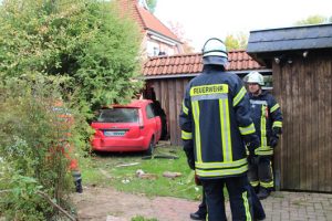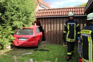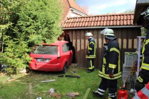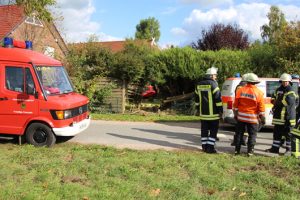 Der erste, folgenschwere Verkehrsunfall ereignete sich gegen 14.25 Uhr in der Straße „Am Sunder“ in Idensen. Dort hatte der Fahrer eines PKW Ford die Kontrolle über sein Fahrzeug verloren, war quer über eine kleine Kreuzung durch einen Zaun und einen Vorgarten gefahren, hatte noch einige Büsche und Bäumchen umgefahren und war dann in einem Schuppen zum Stehen gekommen. Da zunächst der Fahrer nicht befreit werden konnte, wurden neben einem Rettungswagen und dem Notarzt des DRK auch die Freiwilligen Feuerwehren Iddensen und Nenndorf sowie der Rüstwagen der Feuerwehr Buchholz durch die Winsener Rettungsleitstelle alarmiert. Beim Eintreffen der ersten Einsatzkräfte hatten bereits Anwohner den Mann aus dem Fahrzeug gezogen. Er musste von den Einsatzkräften reanimiert werden, er kam anschließend unter Notarztbegleitung in ein umliegendes Krankenhaus. Was genau zu dem Unfall geführt hat, ist nun Gegenstand der Ermittlungen durch die Polizei. Für die Feuerwehren war der Einsatz nach einer Stunde beendet. Sowohl am PKW als auch am Garten und dem Schuppen entstanden erhebliche Sachschäden.