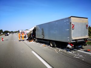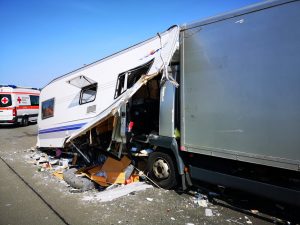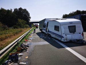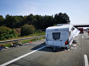 29.08.18 : Feuerwehr Maschen im Einsatz bei Verkehrsunfall auf der A 1 – Sattelzug fährt auf Wohnwagengespann auf – ein Verletzter