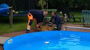 26.06.18 : Reh im Swimmingpool – Feuerwehr Quarrendorf rettet Reh aus misslicher Lage