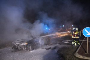 Hittfeld In voller Ausdehnung hat am Dienstag abend ein PW Audi in der Waldesruher Straße in Hittfeld gebrannt. Die Freiwillige Feuerwehr Hittfeld war durch die Winsener Rettungsleitstelle um 18.25 Uhr zu dem PKW Brand alarmiert worden. Binnen Minuten waren die Kräfte am Einsatzort, bei ihrem Eintreffen brannte das Fahrzeug in voller Ausdehnung. Der Fahrer hatte sich rechtzeitig aus dem Fahrzeug gerettet und blieb unverletzt. Die Hittfelder Feuerwehr setzte ein Schaumrohr ein, um das brennende Fahrzeug abzulöschen. Zwei der eingesetzten 20 Feuerwehrleute gingen unter umluftunabhängigen Atemschutz zur Brandbekämpfung vor, sie hatten das Feuer innerhalb weniger Minuten unter Kontrolle. Für die Hittfelder Feuerwehr war der Einsatz nach gut 45 Minuten beendet. Der PKW brannte volständig aus. Die Brandursache ist noch unbekannt, Beamte des Polizeikommissariats Seevetal haben die Ermittlungen übernommen.