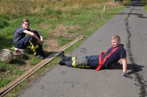 Gemeindebrandmeister Jörn Petersen und der stellvertretende Ausbildungsleiter Norbert Petersen hatten sich ein anspruchsvolles Szenario ausgedacht und mit Helfern der umliegenden Wehren in Szene gesetzt.