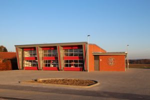 Appel Über ihr neues Feuerwehrhaus freuen sich die Aktiven der Feuerwehr Appel in der Samtgemeinde Hollenstedt. Am Wochenende wurde das Haus durch Samtgemeindebürgermeister Heiner Albers offiziell übergeben und in Dienst genommen. Hollenstedts Gemeindebrandmeister Carsten Beneke und Ortsbrandmeister Arne Gewert nahmen den obligatorischen Schlüssel aus den Händen des Bürgermeisters entgegen und  freuten sich mit den Mitgliedern, dass jetzt ein zeitgemäßes, großzügiges Gebäude zur Verfügung steht. In der Fahrzeughalle sind ein MLF, ein SW KatS und ein MTF untergestellt. Hinter der Fahrzeughalle ist der großzügige Sozialtrakt angebaut, hier stehen u.a. ein in zwei Einzelräume teilbarer gut 75 m² großer Schulungs- und Unterrichtsraum, ein Raum für die Jugendfeuerwehr, ein Büro und eine Küche zur Verfügung. Ebenfalls hinter der Fahrzeughalle liegt der Umkleidebereich für die Damen mit einem separaten Eingang sowie einer Tür in die Fahrzeughalle. Neben der Fahrzeughalle liegt der Umkleidebereich der Herren. Gut ein Jahr dauerten die Bauarbeiten an dem modernsten Feuerwehrhaus in der Samtgemeinde Hollenstedt. Ein Hingucker ist das aus Metall geschmiedete Feuerwehremblem, das die Front des Gebäudes ziert.  Die Zufahrt für die im Einsatzfall anrückenden Privat PKW und die Ausfahrt der Einsatzfahrzeuge wurde getrennt vorgenommen.     -kpw-